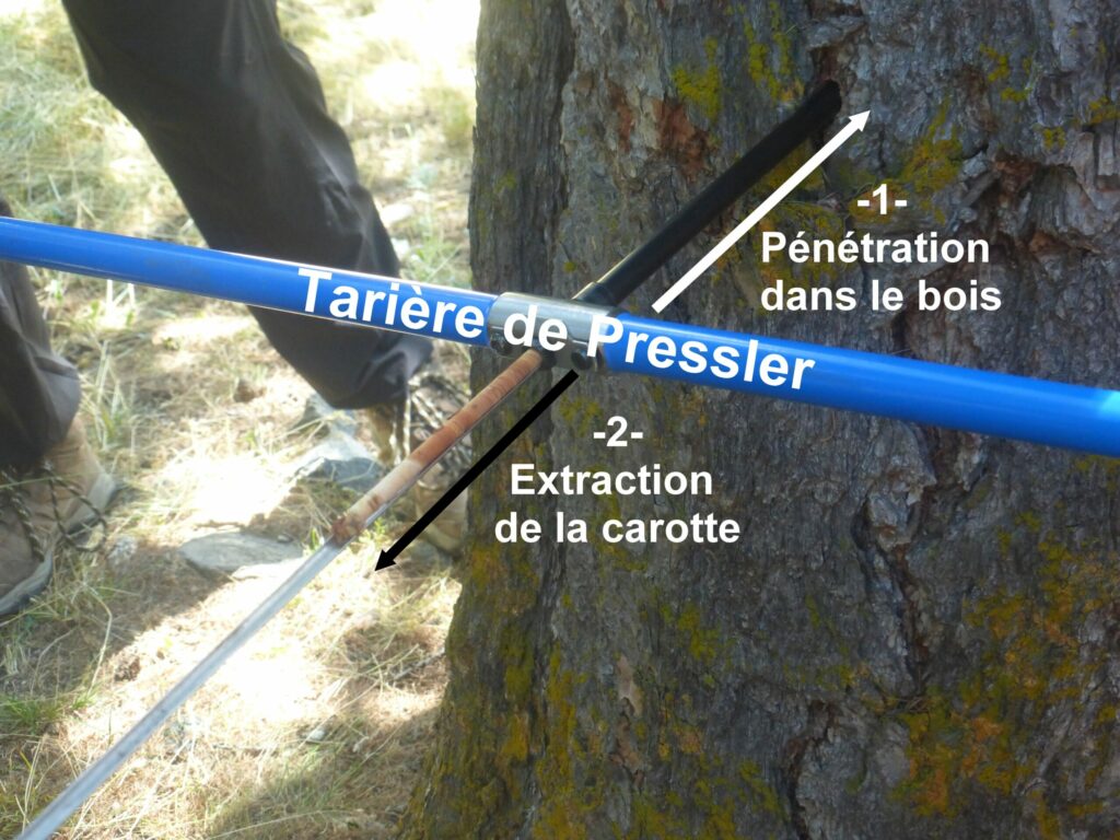 Espèces dans lesquelles il est possible de faire des carottes aisément: les résineux en général, Hêtre, châtaignier, Orme, Robinier faux acacia, Frêne, Tilleul, Noyer, arbres fruitiers, Aulne, Chêne caducifolié…