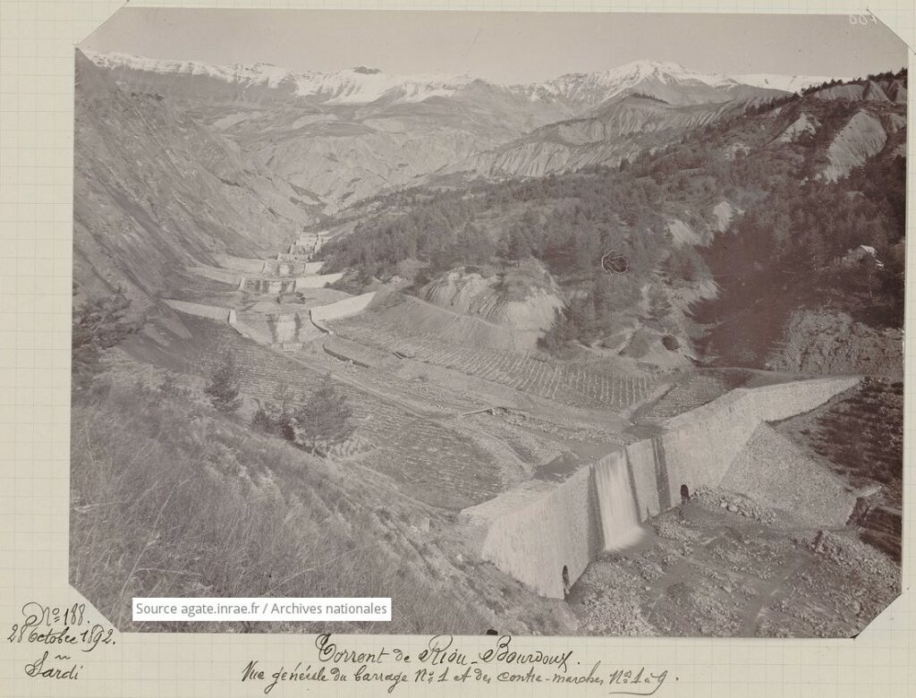 « Pour lutter contre ces phénomènes naturels, l’Administration des Eaux et Forêts a créé en 1861 le service de reboisement des montagnes, devenant plus tard le service de Restauration des Terrains en Montagne (RTM). A l’époque, sa mission consiste à reboiser les terrains dégradés et à aménager des dispositifs de protection des populations contre les risques naturels qui combinent des techniques de génie civil et génie écologique. »